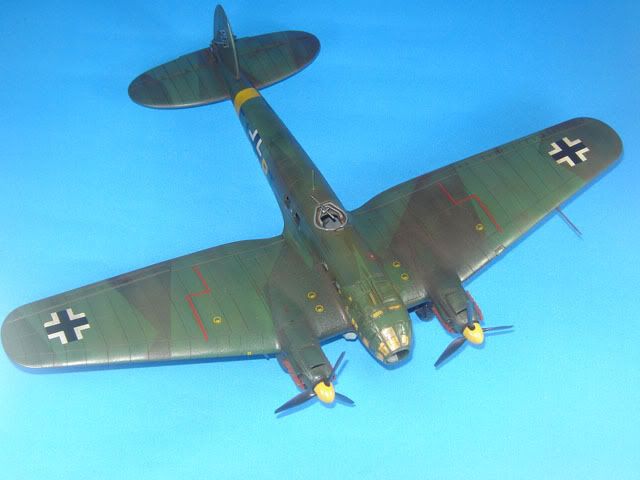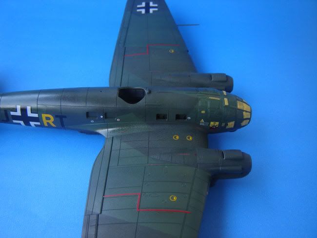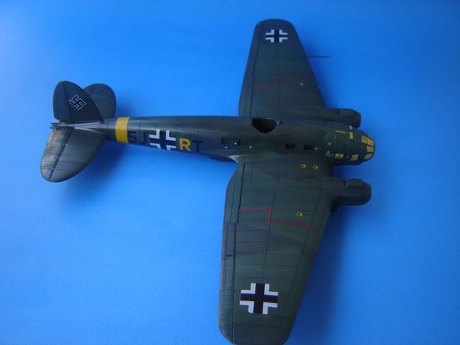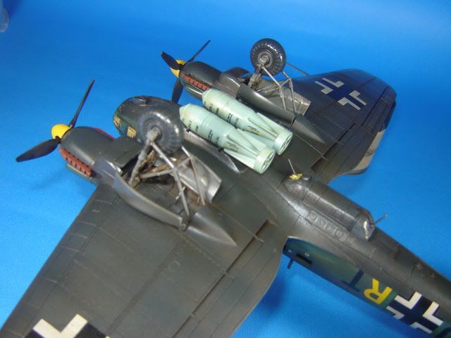 aman ha,bu modeli yapmak isteyecek arkada?lar,ini? takymlaryny yuvalaryna oturturken biliçli olsunlar,önceden numara versinler,hangi numaranyn nereye gelece?ini bilsinler. malum,genelde pervaneli uçaklarda ini? takymlary dy?a do?ru açy yaparlar.he-111 de ise ini? takymlary içe do?ru açyly imi?.ben bilmedi?im için öyle yaptym olmady,böyle yaptym olmady,yahu sa?y sola,solu sa?a my yapy?tyryyoz nedir,halbuki hata olmayacak ?ekikde giri? noktalary verilmi?,niye uymuyo bunlar derken referans kitaplardan baktyk ki ini? takymlary dy?a de?il içe açyly.haa birde,tekerlek yuvasy kapaklaryny da önceden numaralandyryp ayarlayyn.nolcak i?te birbirinin ayny 4 tekerlek kapa?y,yerine koyunca cuk oturur diyodum,her bir parçanyn girece?i yer ayry ayry imi?.