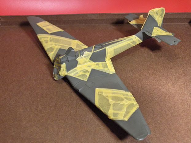 Biraz maskeleme ve montajdan sonra tüm uça?a "astar niyetine" alt rengini (RLM 65) attym.