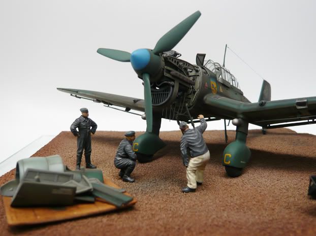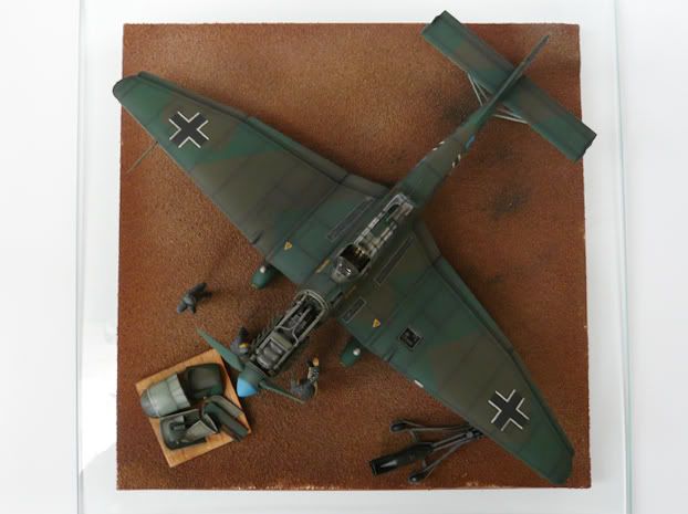 Ardyndan "mini diorama" için Luftwaffe personelinin "herhalde toza topra?a byrakmyyorlardy" diye dü?ünerek, motor kapaklaryny koyabilecekleri ah?ap bir zemin imal ettim.