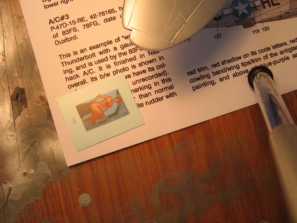 Uçağın yapımında Tamiya 1/48 P-47D kiti kullanılmıştır. Boya olarak Testors Aluminium Metalizer ve sealer kullanılmıştır. Dekal olarak Lifelike dekal P-47 Part 3 seti ve Hobby Decal dry transfer stencilleri kullanılmıştır. Tekerlekler Ultracast firmasının üretmiş olduğu resin tekerleklerdir. Kokpit içi yeterince detaylı olduğu için sadece koltuğa Eduard kemer eklenerek tamamlanmıştır.